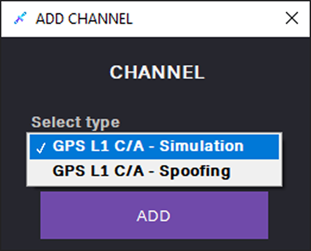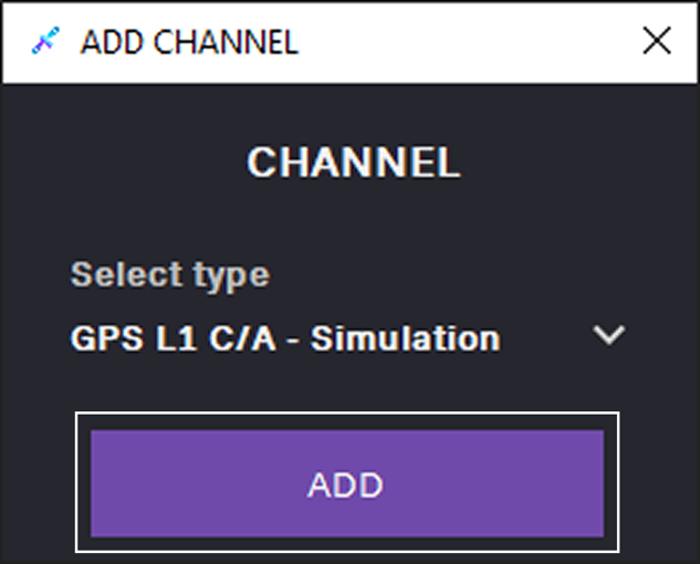 2. In the ADD CHANNEL dialog, select channel type and click ADD. Types of channels: