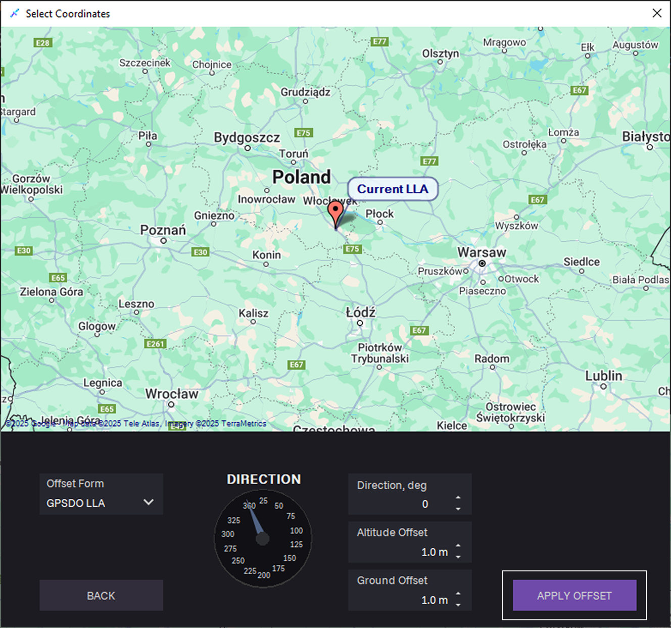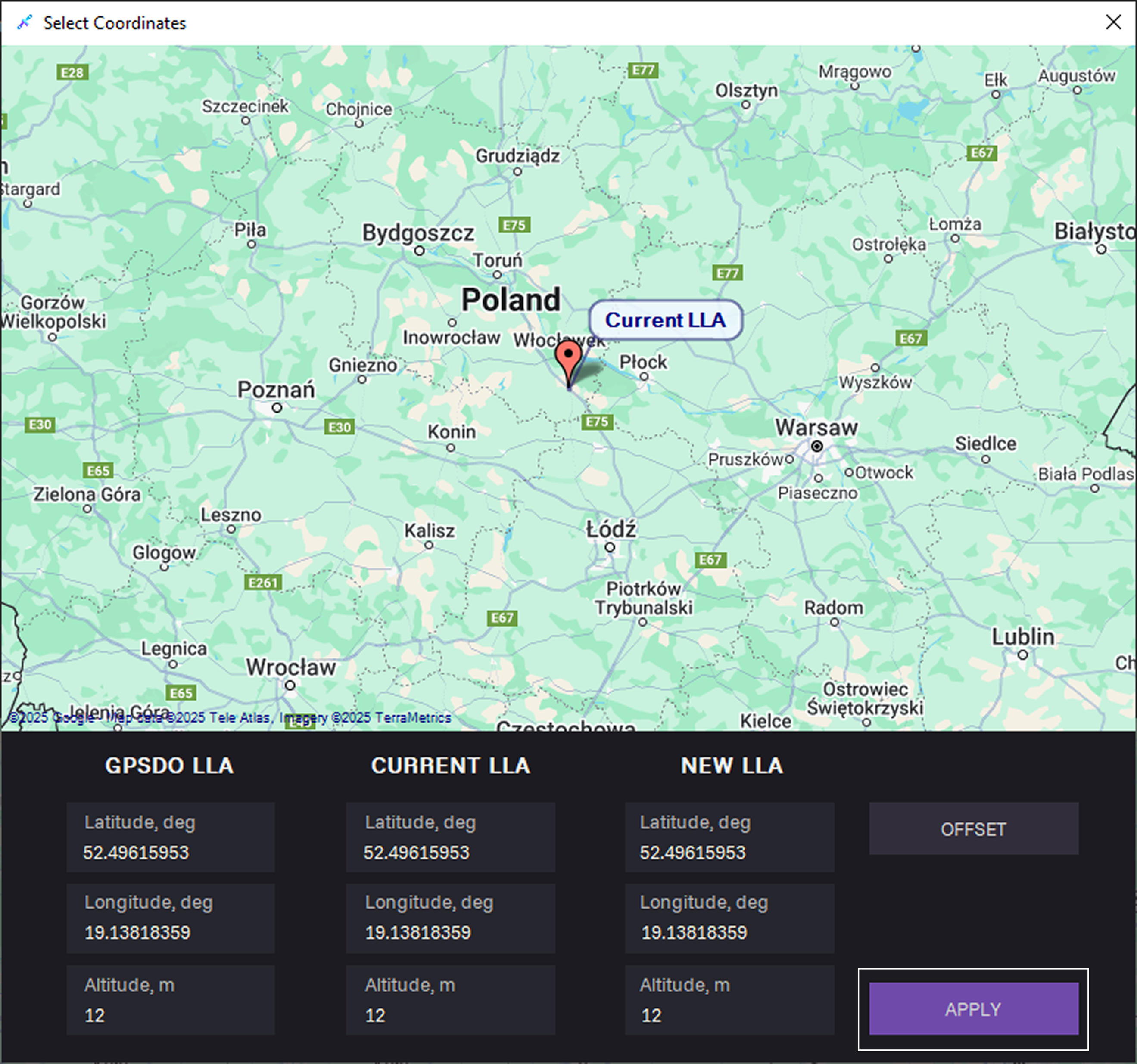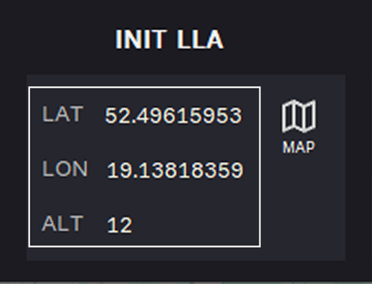 Point mode When selecting the Point mode, the INIT LLA section appears for selecting coordinates. Define the coordinates in one of the following ways: | ||