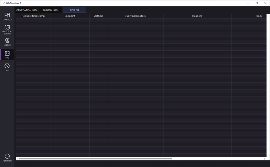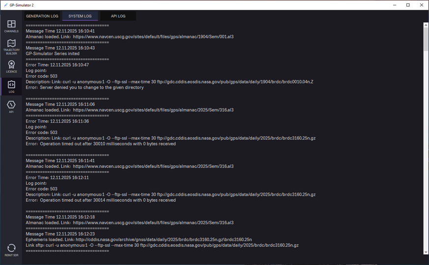 The LOG tab is used for storing, viewing and analysing event journals that record the operation of the generator, the app, and interaction with APIs. It contains the following sections: