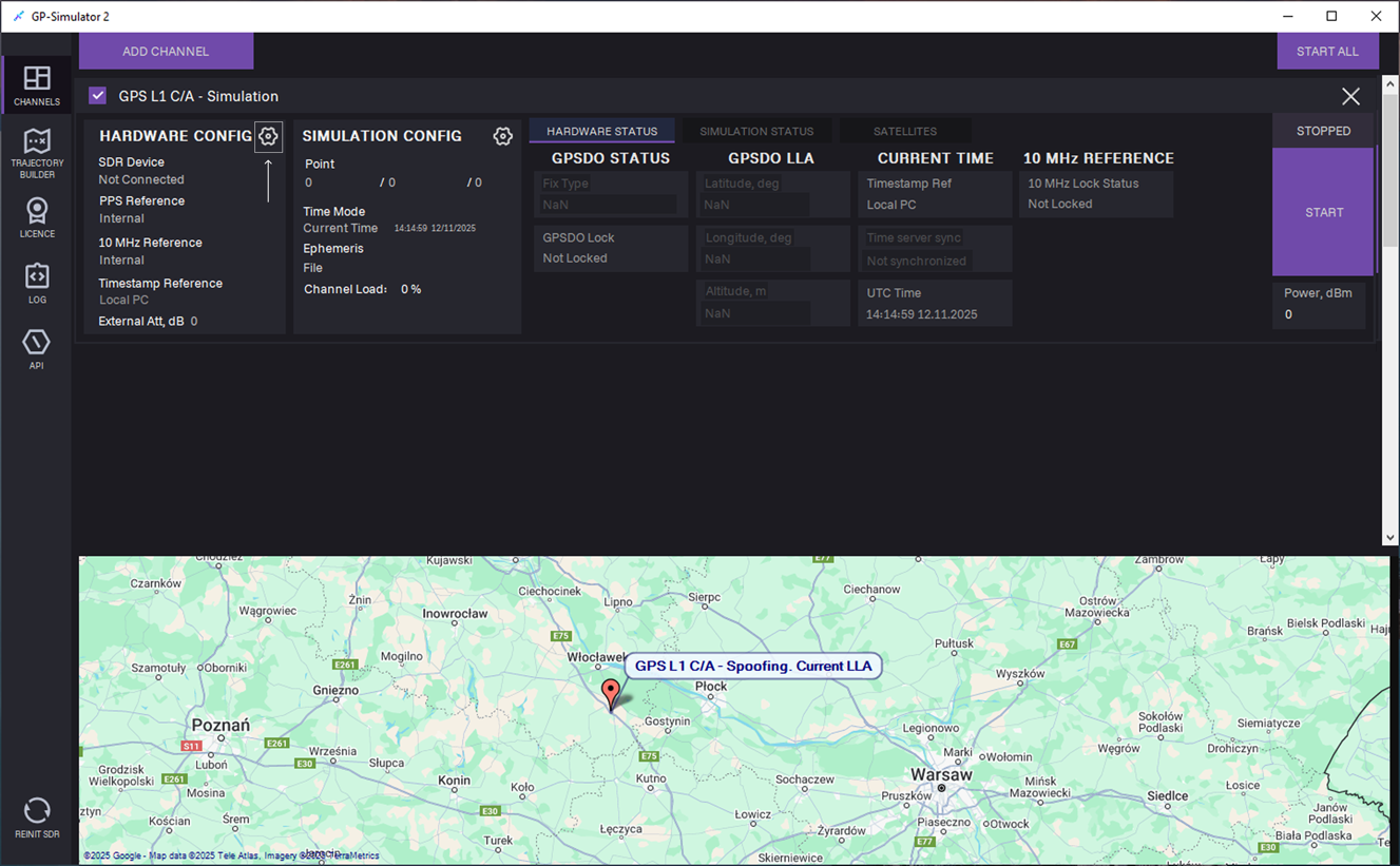 12. Optional: In the Number of Satellites field, select maximum number of satellites. The actual number of satellites will be defined by the ephemeris data. 13. Select position simulation mode: